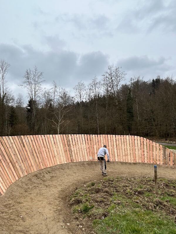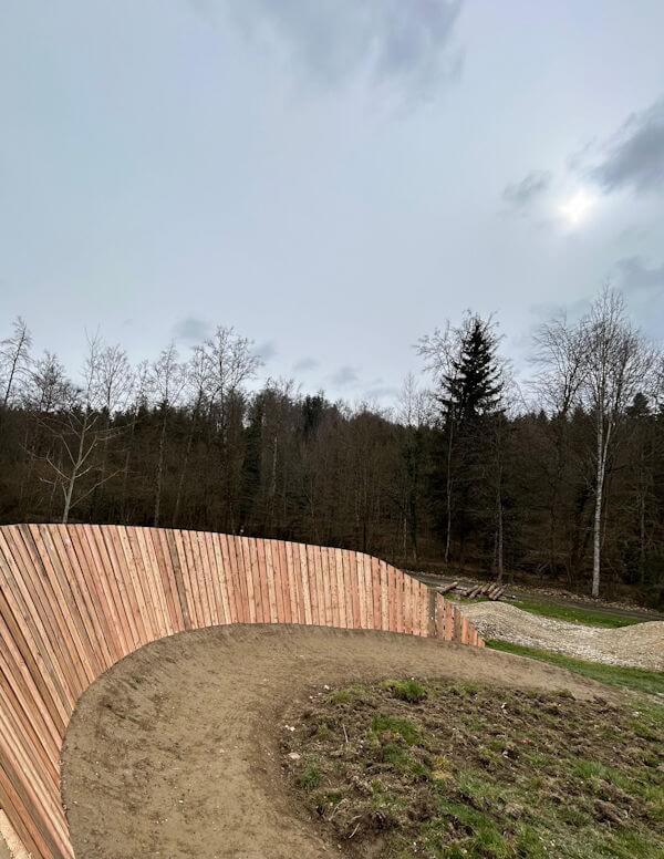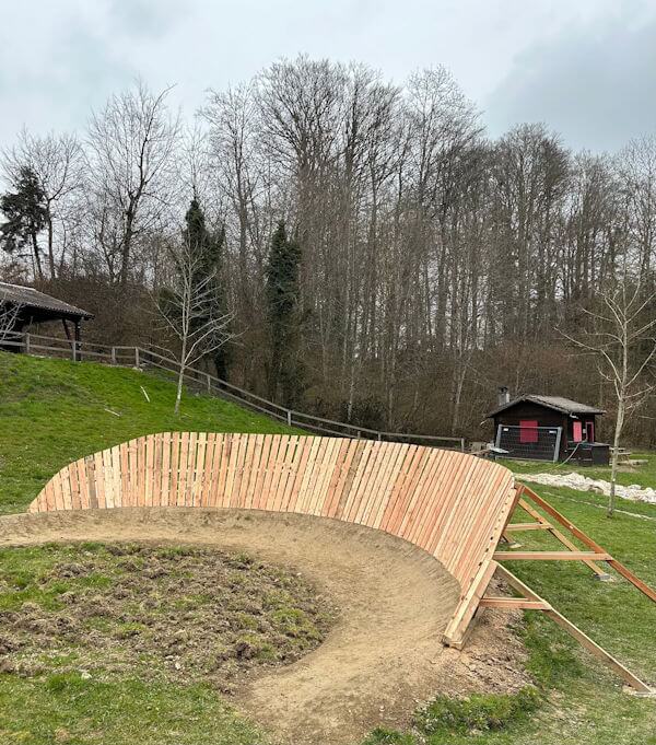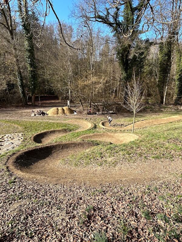 Suite aux travaux réalisés dans le cadre des Championnats suisses XCO, le vélo club d’Echallens nous a mandaté pour créer de nouveaux modules et réaliser un entretien de la partie Skills-center de la piste permanente. Les aménagements réalisés sont les suivants ; construction d’un wall-ride incurvé en bois, d’une table pour l’apprentissage des sauts et d’une piste de remontée (uphill), rénovation de la zone d’obstacle en troncs et entretien sur les drops et les virages relevés.